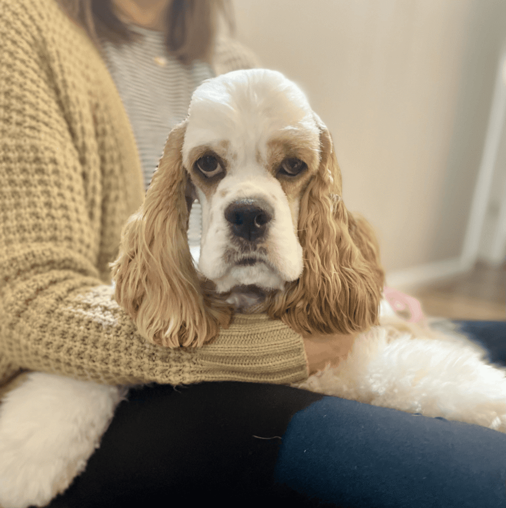 Lucy is an American Cocker Spaniel. She is a red and white Cocker Spaniel with the most lovable temperament. She’s never met a stranger and loves to be in the middle of all the action. She is the best snuggle buddy on the couch, but she also loves to run and play with the Golden girls. She comes from a long heritage of show dog winners, and while she doesn’t compete in the show ring, she is a champion in our family. 😊 We can’t wait to see her AKC Cocker Spaniel puppies! We are planning Lucy’s first litter for late summer/early fall, after she completes her health testing.